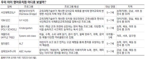 《어릴 때부터 영어 학습 기반을 쌓아야 한다고 생각하는 학부모가 적지 않다. 이 같은 학부모의 니즈(Needs)에 따라 영어유치원 수도 증가하고 있다. 서울강남교육청에 따르면 강남구, 서초구에 등록된 영어유치원은 2006년 56곳에서 2009년 86곳으로 30개가 늘었다. 일반유치원이 2006년 61곳에서 2009년 55곳으로 줄었다는 점을 감안하면 영어유치원을 향한 관심이 높아진 것으로 볼 수 있다. 영어유치원을 선택하는 학부모라면 꼼꼼히 따져야 한다. 우리 아이의 첫 번째 영어 교육을 책임질 영어유치원, 무엇을 따져봐야 할까? 영어유치원 선택 시 학부모가 꼭 확인해야 할 점을 짚어보자.》 [A] 내 아이의 성격, 영어유치원과 맞는가?