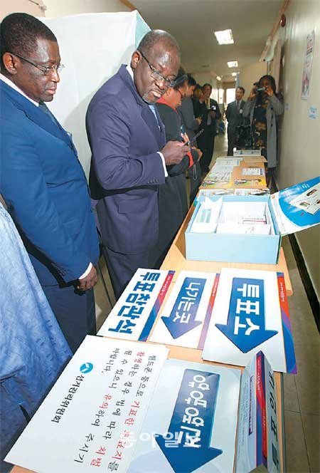 20일 서울 종로구 인의동 선거연수원에서 필리핀 몽골 미얀마 캄보디아 카메룬 나이지리아 케냐 볼리비아 피지 등 9개국 14명의 선거관리 관계자들이 선거 관련 자료를 보고 있다. 이들은 27일 치러지는 재·보궐선거를 참관하는 등 다음 달 3일까지 선거관리 기법을 배울 예정이다.