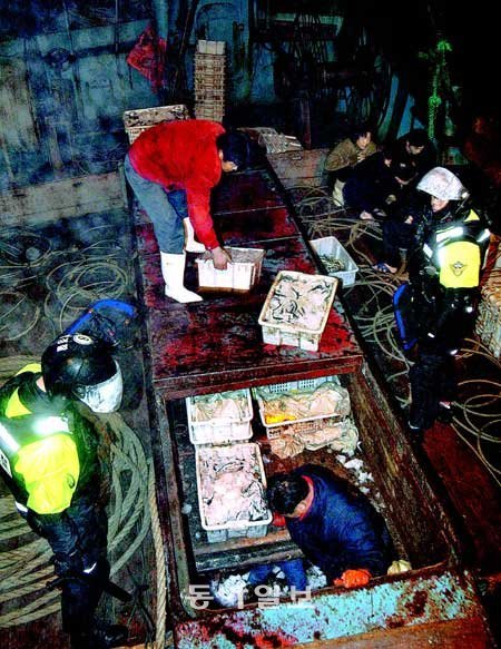 지난해 중국어선 단속 과정에서는 경찰관 14명이 다쳤고 해마다 10명이 넘는 부상자가 나오고 있다. 그는 “단속과정에서 중국선원이 보여주는 폭력은 단순한 저항을 넘어 해적에 가깝다”며 “쇠파이프와 도끼는 예사고 심지어 대검까지 휘두르고 있다”고 전했다.