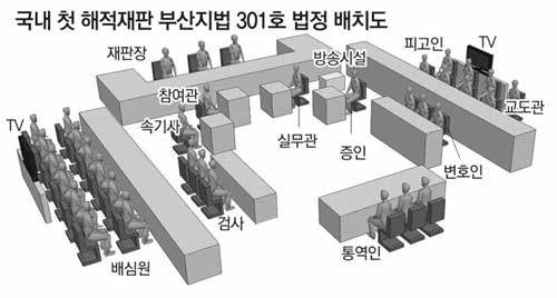 ‘삼호주얼리호’를 납치했다가 우리 군에 생포된 소말리아 해적에 대한 국민참여재판을 앞두고 국내 언론은 물론이고 AP 로이터 알자지라 등 외신까지 취재진을 파견하는 등 국내 사법 사상 처음으로 열리는 해적 재판에 국내외 관심이 뜨겁다. 이번 재판은 23일부터 5일간 부산지법 301호 대법정에서 열린다. 22일 부산지법에 따르면 이번 재판을 취재하기 위해 국내 25개 주요 언론사를 비롯해 AP, AFP, 로이터, 블룸버그 등 유력 통신사와 일본 아사히신문 등 국내외 언론매체 50여 곳이 취재 허가 등록 절차를 마쳤다. 아랍권 위성방송 알자지라는 해적 특집방송을 만들기 위해 기자, 카메라 기자, 방송 PD를 부산에 보냈다. 법원은 취재 편의를 위해 법정에 취재석과 청사 내에 별도 기자실도 마련했다.