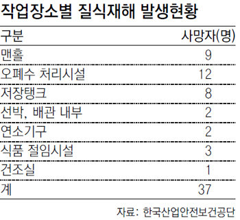 7월 22일 서울 용산구의 한 상수도 맨홀 안 작업장에서 질식사고가 발생해 1명이 숨지고 2명이 중태에 빠졌다. 좁고 밀폐된 공간은 고온다습한 경우가 많아 미생물 번식이 활발해지면서 산소가 모자라는 일이 많다. 결국 이런 환경에서 작업하다 질식사고를 당하는 사례가 적지 않게 발생하고 있다. 특히 산소농도가 10% 미만인 공간에 들어가면 즉시 의식을 잃게 될 정도로 위험하다. 2008년 14명이 숨졌고 2009년 12명, 지난해 11명 등 3년 동안에만 37명이 숨졌다. 서울시 소방재난본부는 질식사고를 막기 위해 공기호흡기 무료 대여제를 시작한다고 24일 밝혔다.