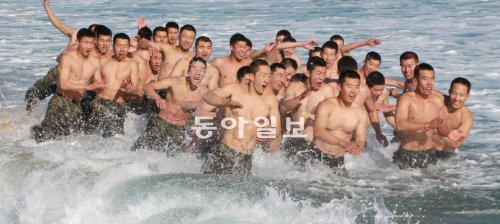 24일 영하의 칼바람 속에 강원 양양군 해안에서 특전사 해상침투훈련이 진행됐다. 제3공수특전여단 특전용사들이 추위에 아랑곳하지 않고 바닷물 속에서 체력을 단련하고 있다.