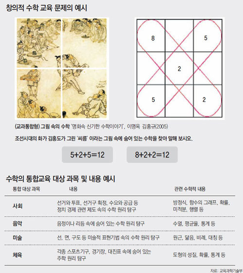 이런 문제를 바로잡기 위해 정부가 수학 교육 방식을 대대적으로 손질하기로 했다. 실생활과 연계된 이야기 중심으로 바꿔 재미있게 배우도록 하겠다는 전략이다. 예를 들면 지금은 확률이나 통계를 가르칠 때 무조건 공식을 외우고 숫자를 대입해 풀도록 하지만, 앞으로는 스포츠 대진표에 숨어 있는 수학 원리를 이해하고 깨치게 하는 방식이 된다.