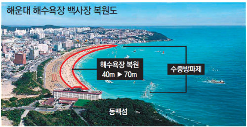 구는 앞으로 5년 동안 492억 원을 들여 동백섬과 미포 쪽에 각각 길이 200m의 잠제를 바닷속에 설치할 계획이다. 선박유도 및 잠제보호 조형물도 설치한다. 또 연안과 잠제 사이에 호안시설을 만들고 모래도 추가로 뿌릴 예정이다. 이 시설들은 태풍과 해일을 완충하는 것은 물론이고 이안류(離岸流·한두 시간 정도의 짧은 기간에 빠른 속도로 해안에서 바다 쪽으로 흐르는 좁은 표면 해류) 방지장치 역할을 할 것으로 보인다. 배덕광 해운대구청장은 “연간 2000만 명 이상이 찾는 해운대해수욕장의 명성을 드높일 수 있는 획기적인 길이 마련됐다”고 말했다.