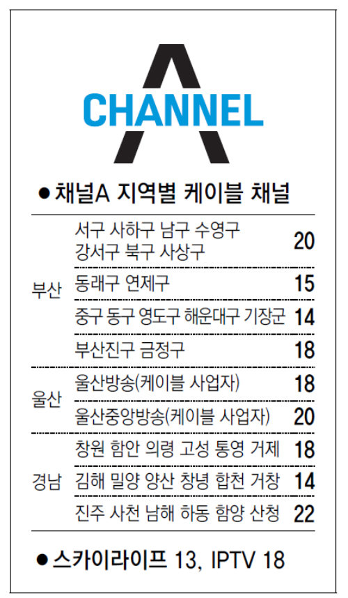 [부산/경남]채널A 지역별 케이블 채널