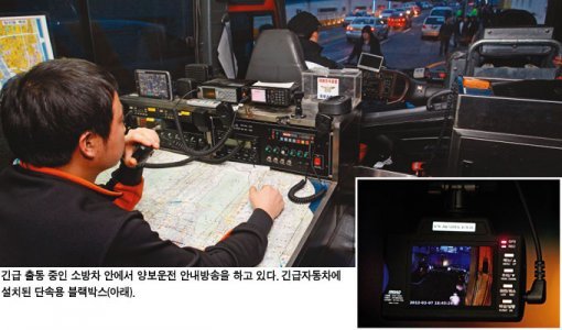 3월 7일 오후 6시 35분, 서울 종로구 중학천길에 위치한 종로소방서. 출동 지령이 떨어지자마자 현장지휘대장과 운전, 통신, 촬영, 감식, 조사, 당직요원 등 7명이 탄 지휘차를 필두로 5대의 차량이 일제히 붉은 경광등을 켜고 사이렌을 울렸다. 긴급 출동이다. 기자도 긴급자동차의 진로 확보 실태를 살펴보려고 지휘차에 동승했다.