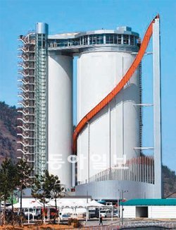 여수세계박람회 조직위원회는 23일 스카이타워 파이프오르간의 첫 시연회 및 기네스 동판 현판식을 갖는다. 여수엑스포 파이프오르간은 일반 오르간과는 다르게 파이프가 스카이타워 외벽(실외·사진)에 설치됐다.