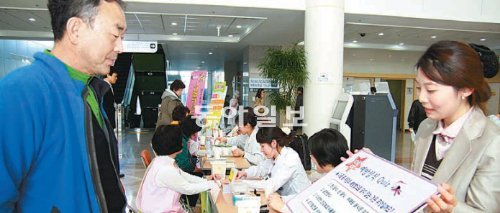 대구 북구 학정동 칠곡경북대병원 로비에서 방문객이 암 예방 퀴즈를 풀고 있다. 이 병원은 환자와 보호자 등을 대상으로 매주 암 관련 프로그램을 마련한다.