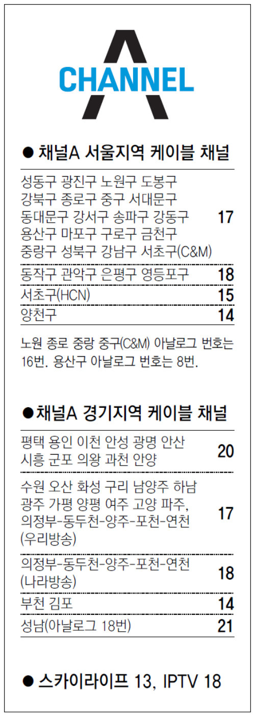 [수도권]채널A 서울지역 케이블 채널