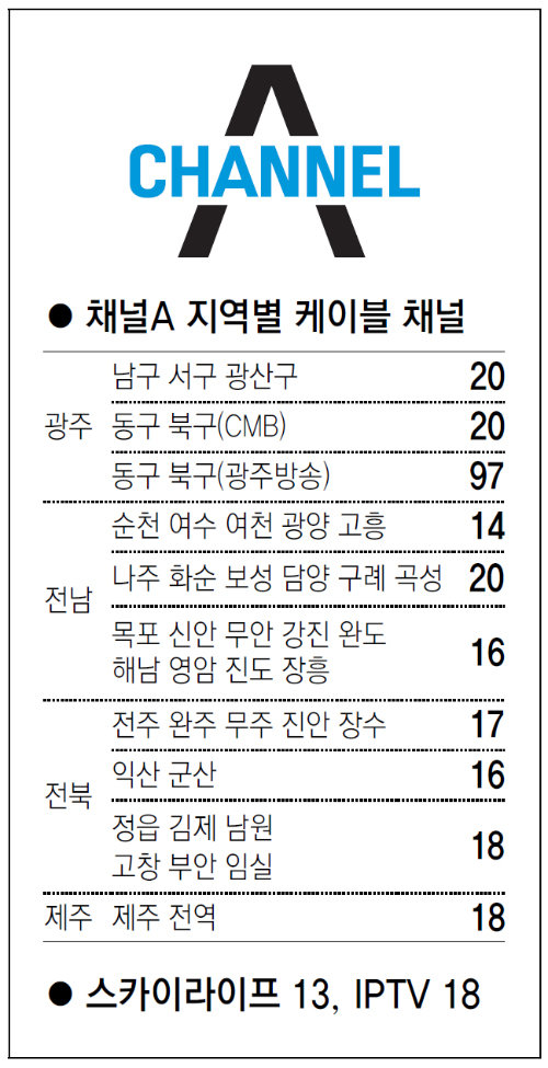 [광주/전남][전북][제주]채널A 지역별 케이블 채널