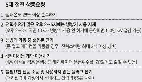 이에 앞서 정부는 전날 피크시간대 조업을 피하는 기업들에 인센티브를 지급하기로 약속하는 전력 부하관리를 통해 200만 kW의 전력 수요를 추가로 낮췄다. 전압 조정과 부하관리로 총 270만 kW를 확보하지 못했다면 이날 예비전력은 100만 kW 아래로 떨어져 계획정전을 해야 하는 상황에 내몰릴 수도 있었던 셈이다.