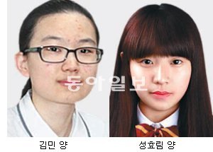 두 학생은 가정형편은 어렵지만 학교성적은 최상위권으로 평소 봉사활동을 많이 하는 공통점이 있다. 김 양은 홀몸노인을 찾아 틈틈이 봉사활동을 꾸준히 해 교내 모범상과 효행상을 받았다. 그는 “대학에서 의학을 공부한 뒤 소외 계층에 의료봉사를 하는 삶을 살고 싶다”고 말했다. 지난해 한국해외봉사단원연합회를 통해 캄보디아에서 교육봉사를 했던 성 양은 “대학에서 정치외교학을 공부해 외교관이 되고 싶다”고 했다.