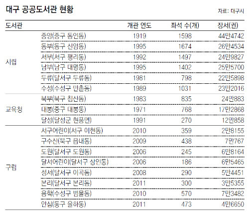 대구시가 추진하는 공공도서관 통합서비스에 운용의 묘가 필요하다는 지적이 일고 있다. 무리하게 통합 시스템을 고수하다보니 일부 구청 도서관은 시스템 차이로 활용이 되지 않는 것. 시는 향후 대학 도서관까지 통합 폭을 넓힐 계획이지만 이마저도 같은 이유로 서비스 활용이 쉽지 않을 것으로 보인다.