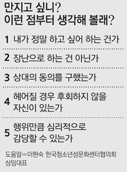 문제는 과도한 신체 접촉으로 10대의 성 관념이 왜곡될 수 있다는 점이다. 한국교총 김항원 교권본부장은 “교내 신체 접촉은 ‘도미노’ 작용을 일으켜 다수 학생의 마음을 흔들 가능성이 크다”고 지적했다. 이현숙 한국청소년성문화센터협의회 상임대표는 “여학생의 경우 교내 신체 접촉이 ‘낙인’이 돼 불이익을 당할 가능성이 크다. 성적인 자기결정을 할 땐 매우 신중해야 한다”고 강조했다.