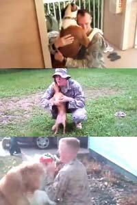 이 영상은 부대에서 집으로 귀환한 군인들을 개가 반갑게 맞이하는 모습을 담고 있다. 냄새를 맡은 개들은 문이 열리기가 무섭게 주인에게 달려들어 얼굴을 핥는다.
