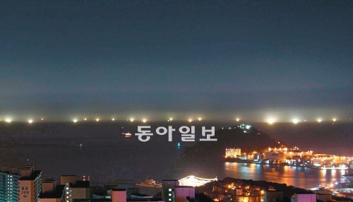 동해 남부 해역을 회유하는 갈치를 잡기 위해 야간 조업에 나선 선박들이 15일 새벽 집어등을 밝힌 채 부산 오륙도 앞바다에서 고기잡이에 전력을 다하고 있다.