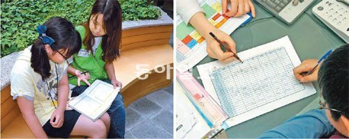 명문대학생 멘토에게 일대일 학습지도를 받으며 공부습관을 잡을 수 있는 초중학생 대상 ‘자기주도학습 멘토링 캠프’가 올 겨울방학에 열린다. 사진은 지난 캠프에서 명문대 멘토에게 일대일 지도를 받는 모습(왼쪽)과 학습플래너 작성법을 배우는 모습(오른쪽).