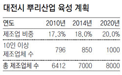 대전시는 이에 따라 정보기술(IT) 생명기술(BT) 등 첨단기술과 서비스산업 기반을 바탕으로 제조업을 육성해 제조업 비중을 2020년까지 20%로, 제조업체 수도 6412개에서 2020년에는 8000개까지 늘리기로 했다.