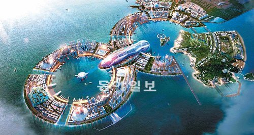 마카오의 3배 면적인 용유·무의도 80㎢에 2030년까지 8자 형태로 건설될 문화관광레저 복합도시 ‘에잇시티’ 조감도. 인천경제자유구역청 제공
