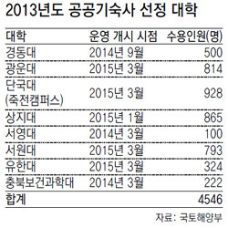 이들 대학에 지원되는 국민주택기금 및 사학진흥기금은 기숙사 건설비의 90%로 나머지 10%는 대학이 부담한다. 총 4546명의 학생을 수용할 수 있는 이 8곳의 공공기숙사는 대학별로 2014년 3월∼2015년 3월 중 공사를 마치고 운영을 시작한다.