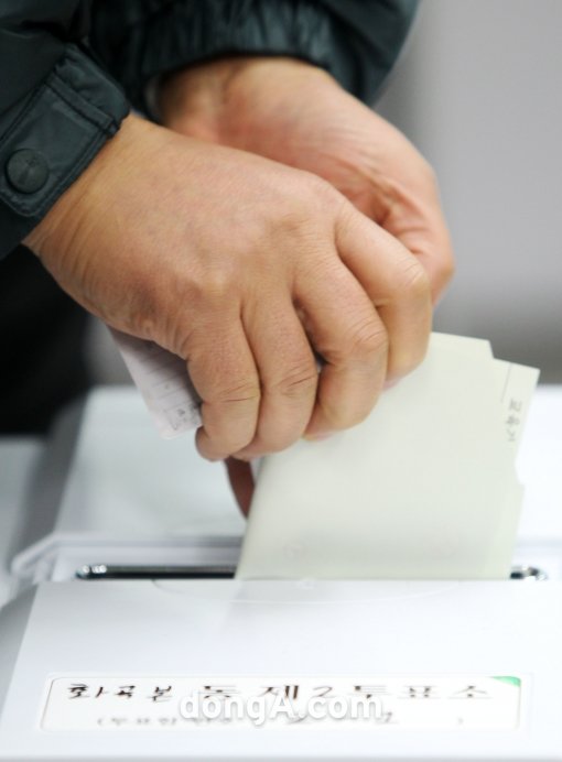 [SD포토] 시민, 두 손으로 소중한 한 표 행사