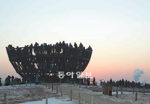 감격의 순간을 기대하며 올해 1월 1일 서울 광진구 광장동 아차산 정상에서 시민들이 새해 처음으로 떠오른 태양을 카메라에 담고 있다. 서울시 제공조금이라도 일찍 보려면 높은 산으로 올라가는 게 좋다. 서울에서 가장 먼저 해가 뜨는 곳은 서울 동쪽의 아차산. 지하철 5호선 광나루역에서 15분 정도로 가깝고 산세가 완만해 매년 4만 명 이상의 해맞이 인파가 몰리는 명소다. 지난해의 나쁜 기운을 몰아내는 ‘용고(龍鼓) 울리기’, 만사형통 민화 찍기 등 다양한 행사가 열린다.