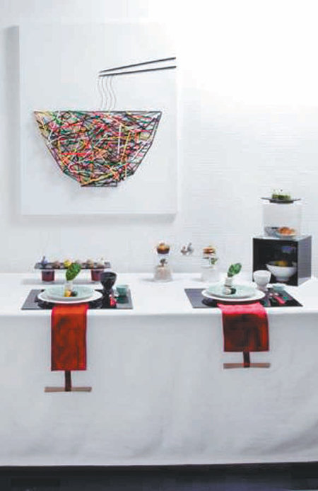한국에서 유일하게 인천문예전문학교 학생들의 ‘아시아누들 페스티벌’이 전시 자격이 주어지는 본상 50개 작품에 꼽힌 데 이어 10개 우수작으로 뽑혔다. 대상 금상 은상 동상에 이어 가작으로 당선된 것. 이 작품(사진)은 나무젓가락을 이용해 액자와 테이블에 국수 먹는 장면을 기발하게 표현했다. 이 학교 정지수 학장은 “일본 왕실의 후원으로 세계 최고 권위의 식공간 연출 축제로 자리 잡은 도쿄테이블웨어 페스티벌에서 2007년부터 연속해 좋은 성적을 거두고 있다”고 소개했다. 이 페스티벌은 4일부터 일주일간 열리고 있으며, 수십만 명이 찾는다.