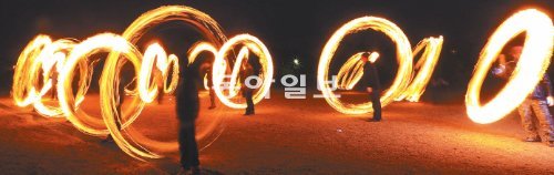 정월 대보름을 나흘 앞둔 20일 전남 함평군 월야면 달맞이공원에서 어린이와 주민들이 쥐불놀이를 하고 있다. 들판에 나가 논밭두렁의 잡초를 태워 해충 피해를 줄이고 새해 평안과 무사고를 기원하는 전통 풍속이다.