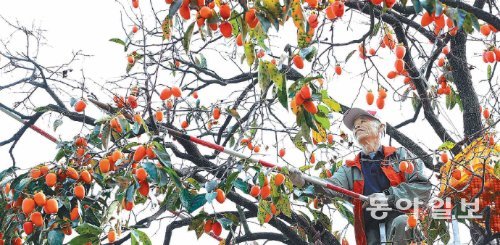 “누구에게 보내줄까”… 감 따는 어르신