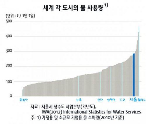 서울시민의 하루 물 사용량이 세계 주요 도시에 비해 많은 것으로 나타났다.
