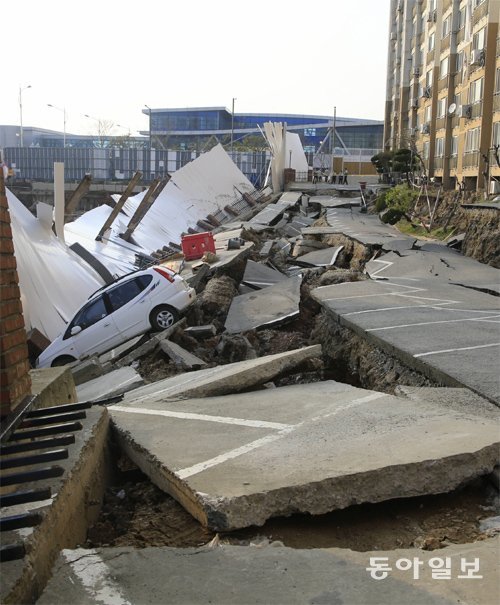 폭탄 맞은듯… 목포 아파트 단지내 도로 ‘폭삭’