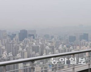 오늘 미세먼지 농도가 '나쁨'으로 종일 뿌연 하늘이 보인다.