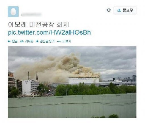 SNS등에 따르면 아모레퍼시픽 공장 화재로 대화동은 물론 인근 둔산동까지 연기가 가득한 것으로 전해졌다.