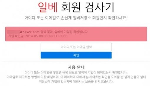 아이디나 이메일 등을 해당 검사기에 입력하면 일베 회원인 지 아닌지 판별이 난다는 것.
