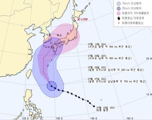 이에 따라 이날 오후부터 제주도 남쪽 먼바다, 8일 오전부터 제주도 앞바다와 남해 해상이 영향권에 들어가 바람이 매우 강하게 불고 물결이 매우 높게 일 것으로 예상되고 있다.