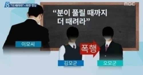 서울의 한 사립학교의 A 교사는 지난해 담임을 맡았던 중학교 1학년 교실에서 학생들이 싸우자 종례시간에 가해학생에게 분이 풀릴때까지 피해학생을 때리라고 시키는 등 폭력을 조장했다.