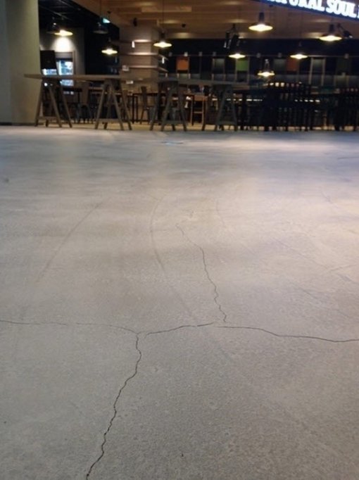 롯데건설은 해명 자료를 통해 “해당 층이 서울의 옛 느낌을 살린 식당이 자리했다”면서 “바닥 균열이 아니라, 일부러 금이 간 것 처럼 연출한 바닥 디자인”이라고 밝혔다.