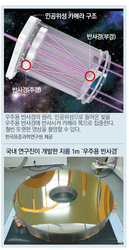 우주용 반사경은 인공위성에 설치된 카메라가 지상을 또렷하게 촬영할 수 있도록 빛을 반사해 모아주는 역할을 한다. 조금이라도 일그러진 곳이 있으면 안 되므로 거울을 정밀하게 다듬는 제작기술이 필요하다. 1m급 반사경은 첩보위성에도 쓸 수 있으므로 전략물자로 구분돼 수출이 매우 제한적이고 제작기술 이전도 불가능해 독자 개발이 필요했다.