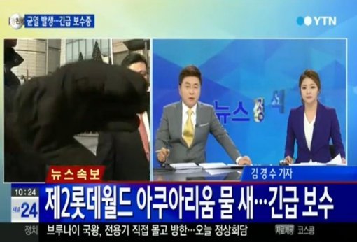 한편 제2롯데월드 관계자로 보이는 남성은 YTN 취재 카메라를 막는 모습도 고스란히 방송에 송출됐다.