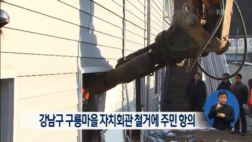 앞서 강남구청은 서울 강남구 개포동 구룡마을에 있는 주민 자치회관 건축물을 철거하겠다고 고지한 가운데 이날 오전 주민들이 회관에 모여 거세게 항의하면서 철거 용역 직원들과 대치상황을 빚었다.