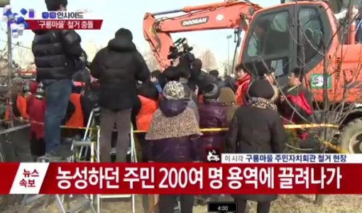 서울 개포동 구룡마을에서 아침부터 벌어진 철거작업에 구룡마을 주민들의 거센 항의를 벌여 법원이 철거를 잠정 중단시켰다.