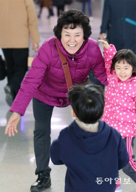 설 연휴를 하루 앞둔 17일 부산역 맞이방에서 할머니가 기차를 타고 먼 길을 찾아온 손주들을 반갑게 맞이하고 있다. 할머니 품으로 뛰어드는 손주를 보는 할머니 얼굴엔 환한 웃음꽃이 피었다.