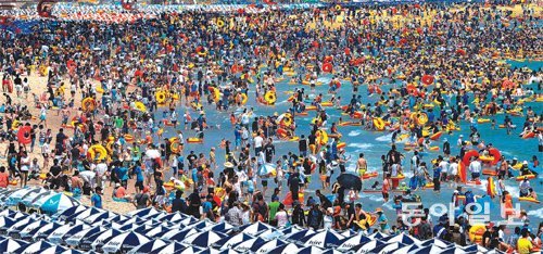 물 반 사람 반… 해운대해수욕장, 8월 첫째주말 170만 인파
