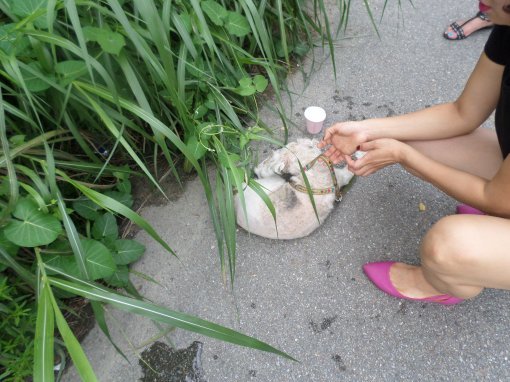 경기 용인시의 한 아파트 도로변에서 산채로 매장된 애완견이 발견돼 경찰이 수사를 벌이고 있다. 5일 용인동부경찰서 등에 따르면 4일 오전 9시 40분경 기흥구 공세동의 한 아파트 앞 도로변 수풀이 우거진 땅에 반쯤 묻힌 포대에서 개의 신음소리가 들린다는 주민신고가 접수됐다. 출동한 경찰은 쌀 포대만한 주황색 포대에 담겨있는 5, 6년생으로 추정되는 몸 길이 40㎝가량의 흰색 수컷 말티즈 1마리를 구조해 관내 유기동물보호소에 인계했다.
