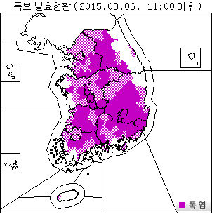 6일 국민안전처는 시민들에게 “전국 대부분 지역에 폭염특보 발령중”이라며 “농사일이나 야외활동을 자제하라. 물을 충분히 마시고 주변 노약자를 돌봐 달라”는 내용의 긴급재난문자를 보냈다.