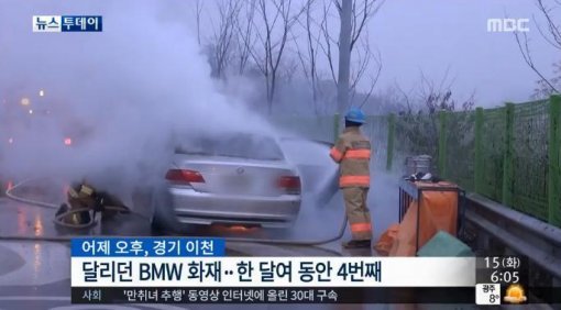 앞서 지난달 3일과 5일, 8일에도 달리던 BMW 승용차에서 불이 나는 사고가 발생해 한 달여 동안 4번의 화재가 발생했다.