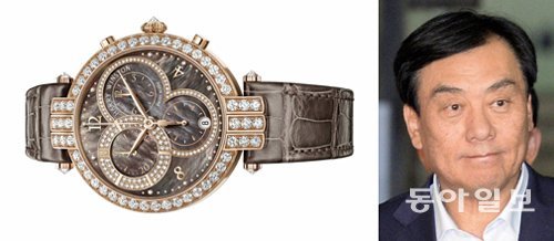 박기춘 의원(오른쪽)이 분양대행업체 대표에게서 받았다는 고급 시계 해리윈스턴과 같은 모델. 동아일보DB