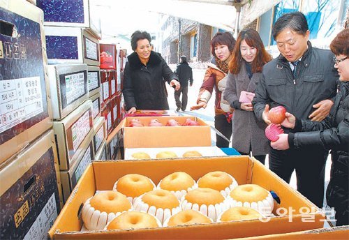 민속명절 설을 앞두고 4일 광주 북구청 광장에서 설 제수용품을 저렴하게 구입하기 위한 농산물 직거래 장터를 열고 있다. 농산물 직거래 장터는 지역 농가에서 재배한 잡곡과 과일 등 제수용품을 판매하고 있다.