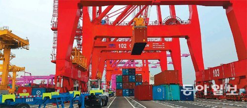 24일 인천신항 내 한진인천컨테이너터미널이 개장을 앞두고 첨단 하역장비를 시험 가동하고 있다. 인천항 외항 시대를 맞아 항만 배후 단지 확대, 내항 개방, 크루즈선 전용 부두 조기 개장 등 인천항 재편이 가속화되고 있다. 김영국 동아닷컴 객원 기자 press82@donga.com