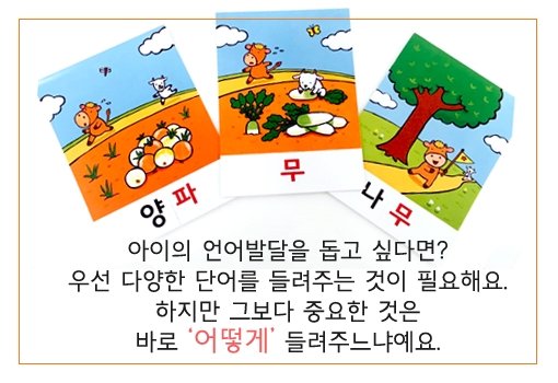 말 잘 하는 아이로 키우고 싶다면, 남다른 표현을 하는 아이로 키우고 싶다면 아이의 언어 발달 단계에 알맞은 방법으로 언어 감각을 자극해줘야 한다. 한 단어로 말하는 2세라면 사물의 이름을 노래나 운율에 담아 들려주며 호기심을 키워주자. 간단한 문장으로 말하는 3세라면 과학적이고 입체적인 놀이로 생각하는 힘을 키워주자. 글자와 책에 관심을 보이는 4세라면 이야기책으로 한글을 쉽게 익히고 책 읽는 재미도 느끼게 해주자.